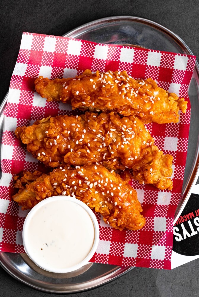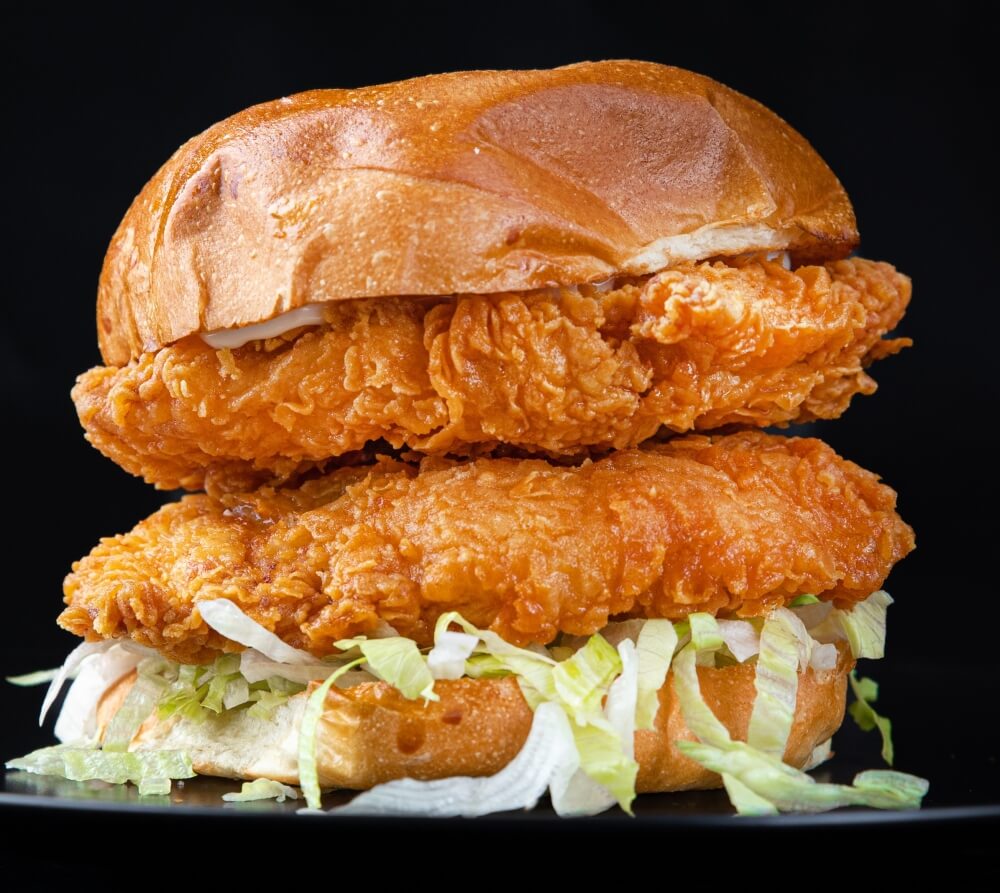 Lettuce, AFC fillet, American cheese, bacon, pickled jalapenos, special honey mustard, and spicy sriracha sauce.