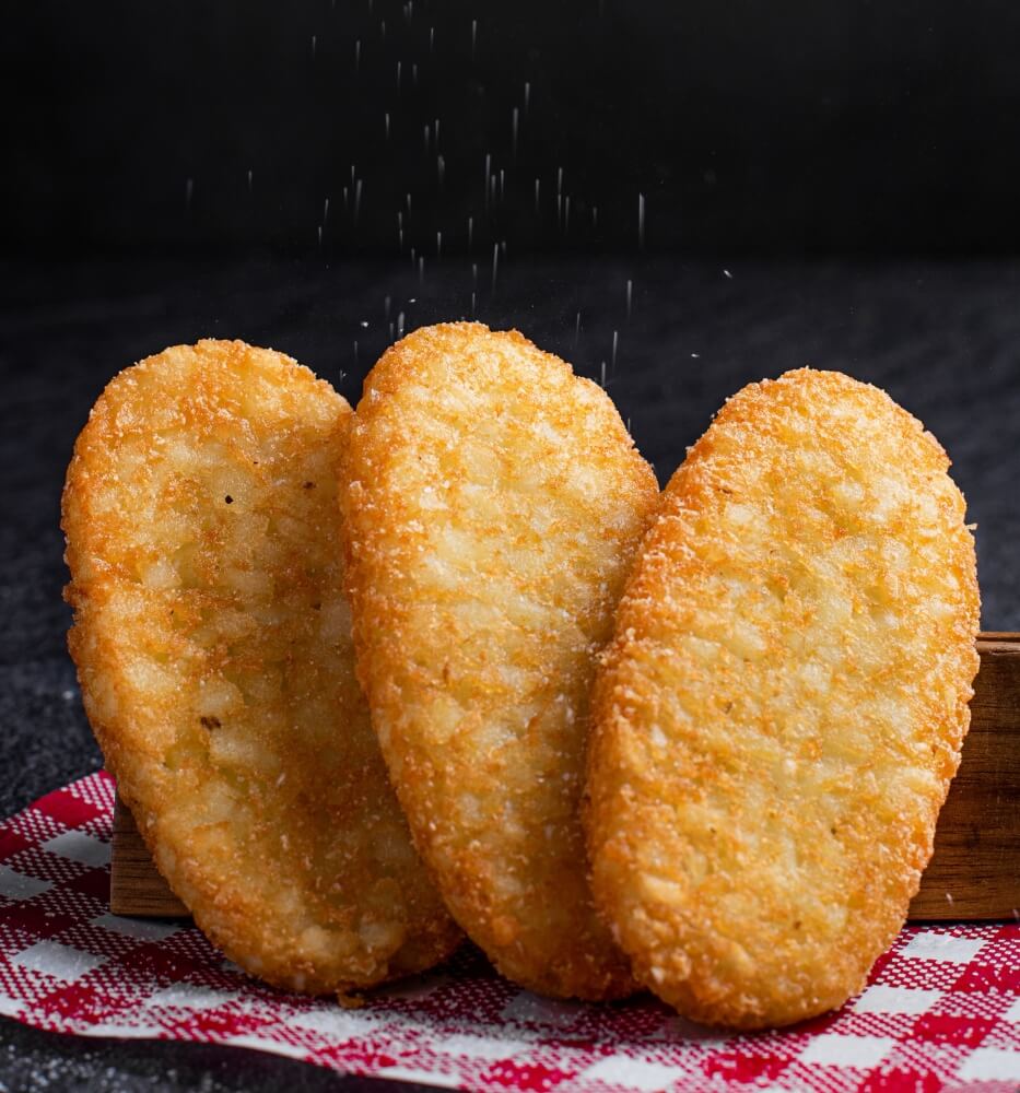 Lettuce, AFC fillet, American cheese, bacon, hashbrown, and choice of sauce.