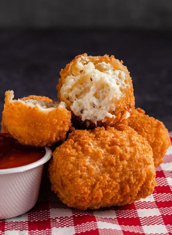 Fries, seasoned Cauliflower poppers (Vege), Melted cheese & choice of sauce