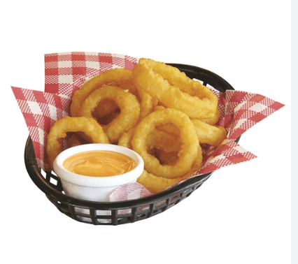 Beef patty, 2 slices of American cheese, grilled onions, onion rings, mayo, and smokey bbq sauce.