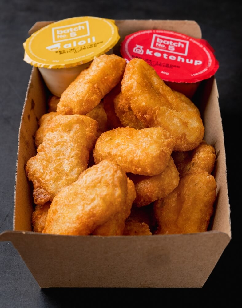 Buttermilk poppers, Asian slaw, Crunchy noodles & sauce of choice